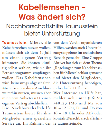 NBH Taunusstein weiter aktiv