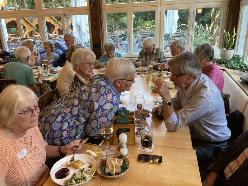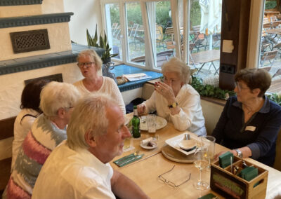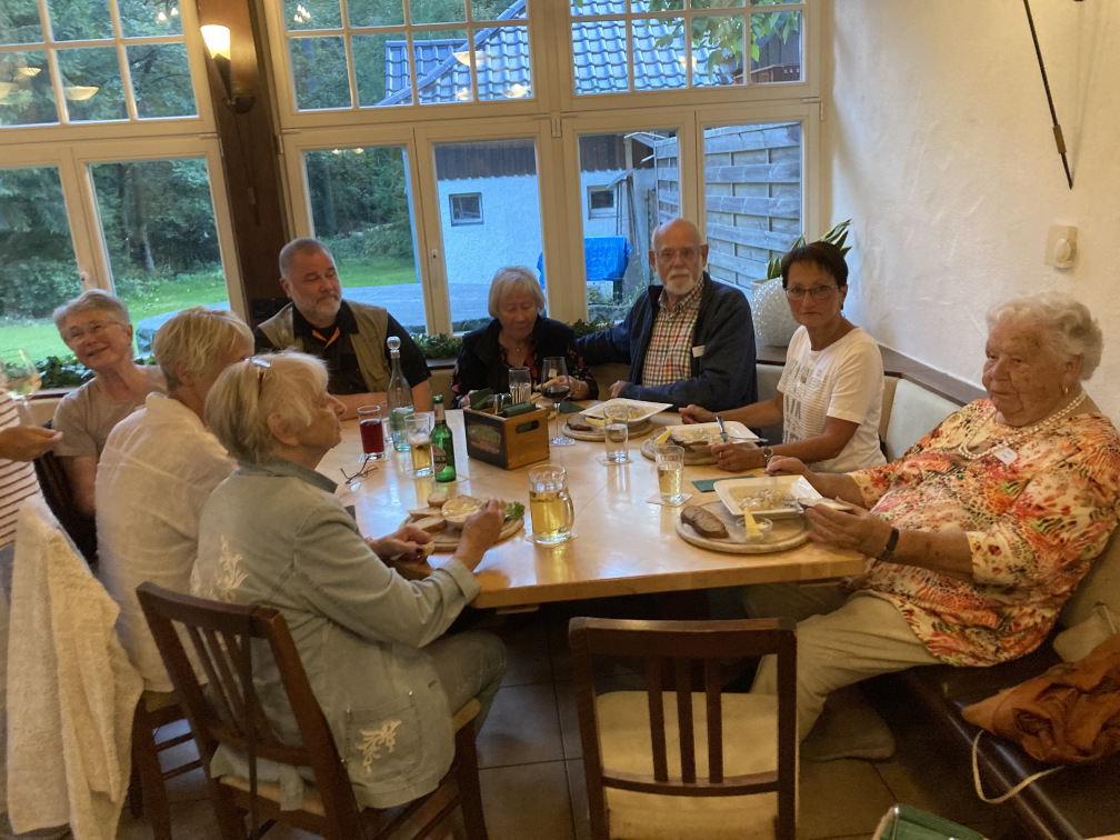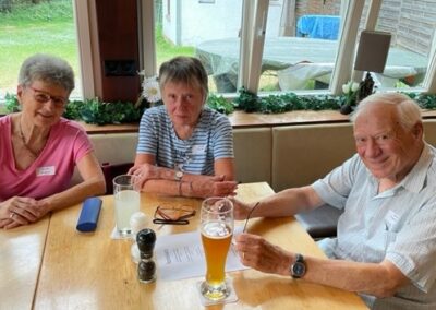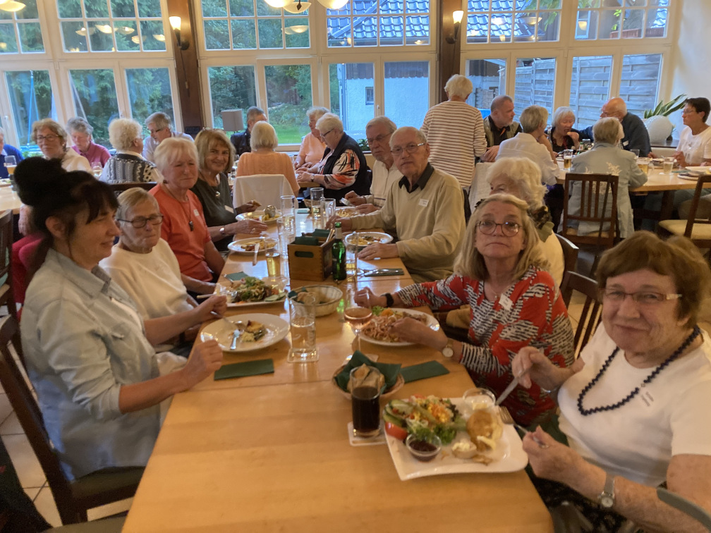 Der Sommerstammtisch der Nachbarschaftshilfe war wieder sehr gut besucht. Bei leckeren Speisen und Getränken fanden die Besucherinnen und Besucher im Restaurant Waldgeist schnell ins Gespräch. Vorstand Günther Menke begrüßte die Runde und freute sich über den angeregten Austausch und viel Lachen an den Tischen.