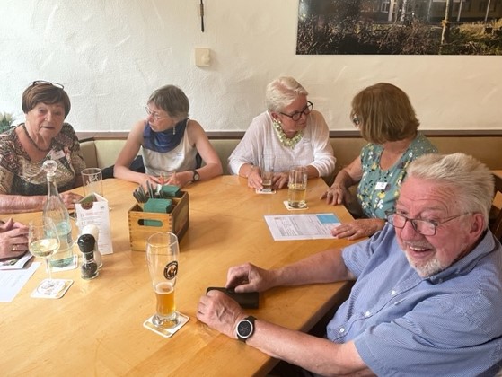 Auch Marlies Senne, Taunussteins Ehrenbürgerin und Mitglied der Nachbarschaftshilfe seit vielen Jahren, genoss die schönen Stunden in anregenden Gesprächen. Das Büroteam hatte wieder alles sehr gut vorbereitet und so war man sich am Ende einig: diese Stammtischrunde war wieder einmal richtig schön und man freut sich schon auf den Termin im September.