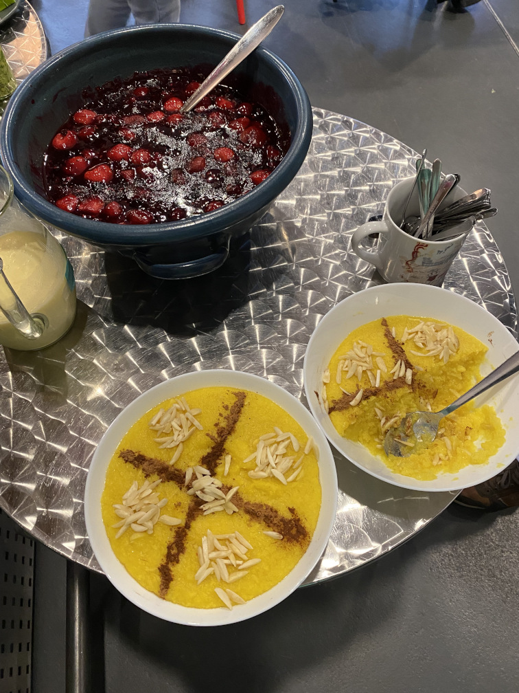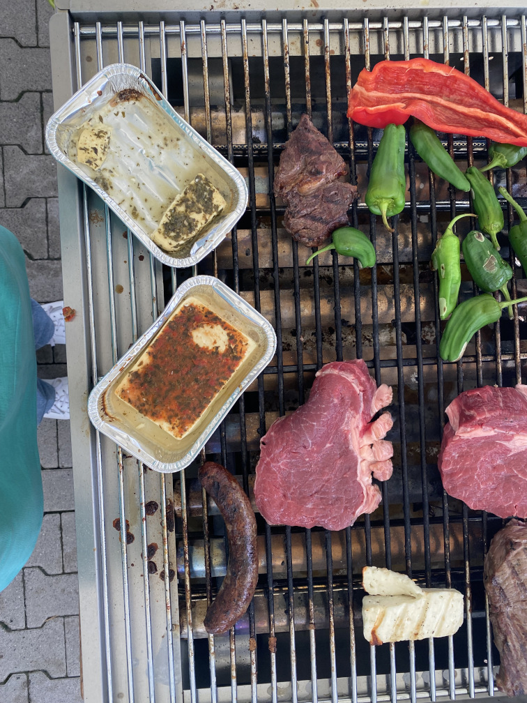 Für das leibliche Wohl gab es Leckeres vom Grill und eine fantastische Auswahl an Salaten. Auch für etwas Süßes für hinterher war gesorgt und eine Spezialität aus dem Iran stand in Konkurrenz zu einer klassischen Roten Grütze mit Vanillesoße und flüssiger Sahne. Wir haben uns auf ein Unentschieden geeinigt.