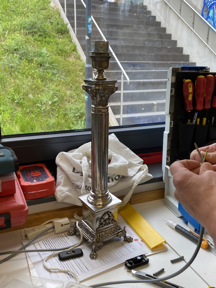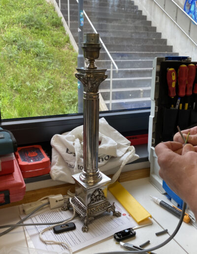 Das April-Repaircafé stand ganz im Zeichen von Lampen und Nähmaschinen; 5 Lampen haben mit ihren Besitzern den Weg ins Café gefunden ebenso wie 6 Nähmaschinen, eine davon aus dem vorletzten Jahrhundert. Aber auch eine Maschine aus dem letzten Jahrhundert war dabei und beide alten Schätze konnten repariert werden. Über solche Herausforderungen freuen sich unsere Reparierer immer besonders.