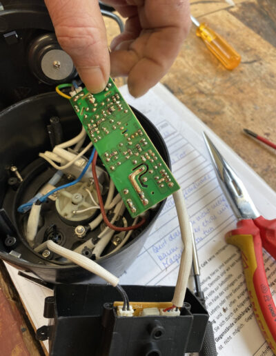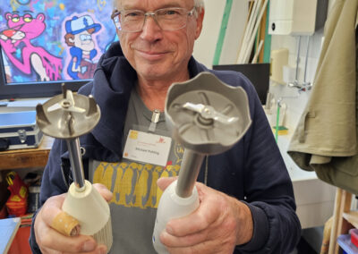 Bei den mitgebrachten Geräten gab es diesmal die übliche Mischung: Staubsauger, viele Mixer, Milchschäumer und einiges zum Kleben. 20 Gegenstände konnten sofort repariert werden, bei 6 Teilen fehlten Ersatzteile, die bis zum nächsten Termin von den Besitzern besorgt werden und nach dem Einbau wieder fast wie neu sind.