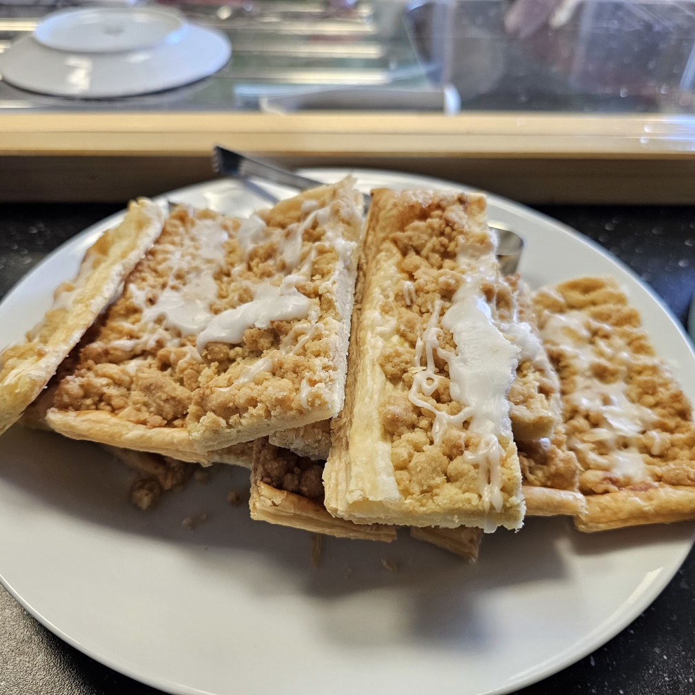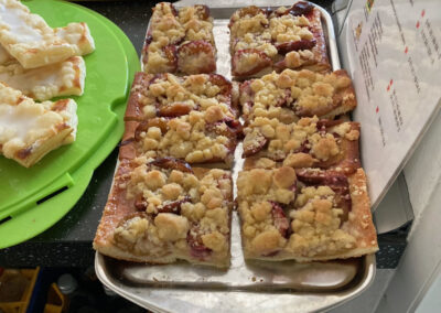 Die Kuchenauswahl war wieder sehr groß: Bienenstich, Eierlikörkuchen, Nussecken, Johannisbeerkuchen, Apfel-/Kirschkuchen und die Dauerbrenner Käse- und Prasselkuchen.