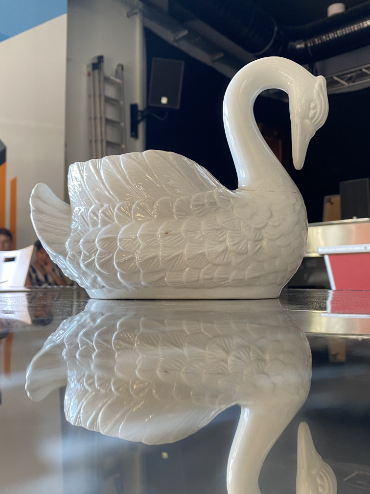 Ein Porzellanschwan ohne Kopf konnte ebenfalls noch gerettet werden. Auch bei den Näherinnen gab es viel zu tun und einige Reparierer machten sogar Überstunden um einen – leider – verunreinigten Staubsauger wieder in Gang zu setzen.